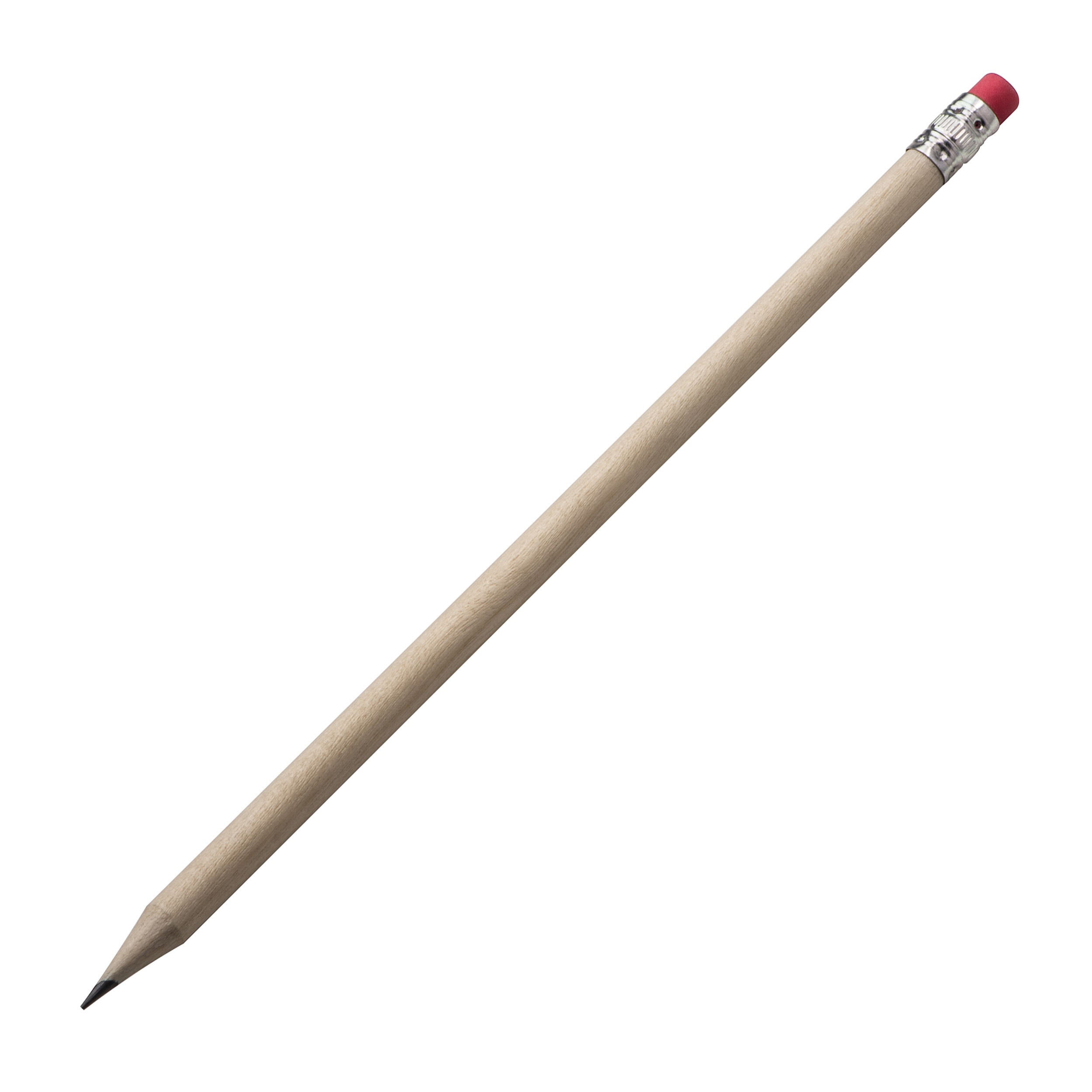 Crayon à papier couleur naturel en bois avec une gomme.